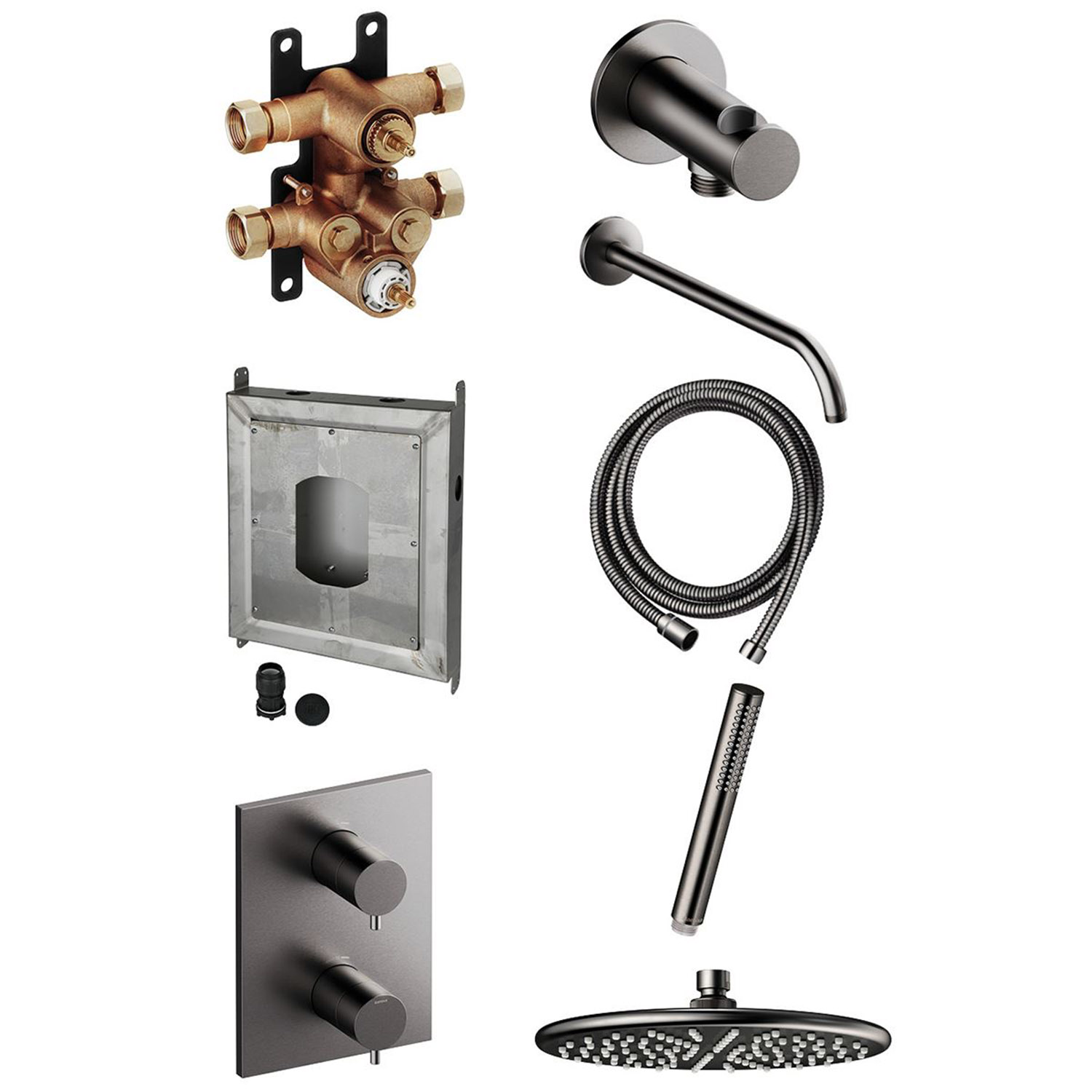 Innbyggingskran for dusj – komplett løsning i børstet grafitt