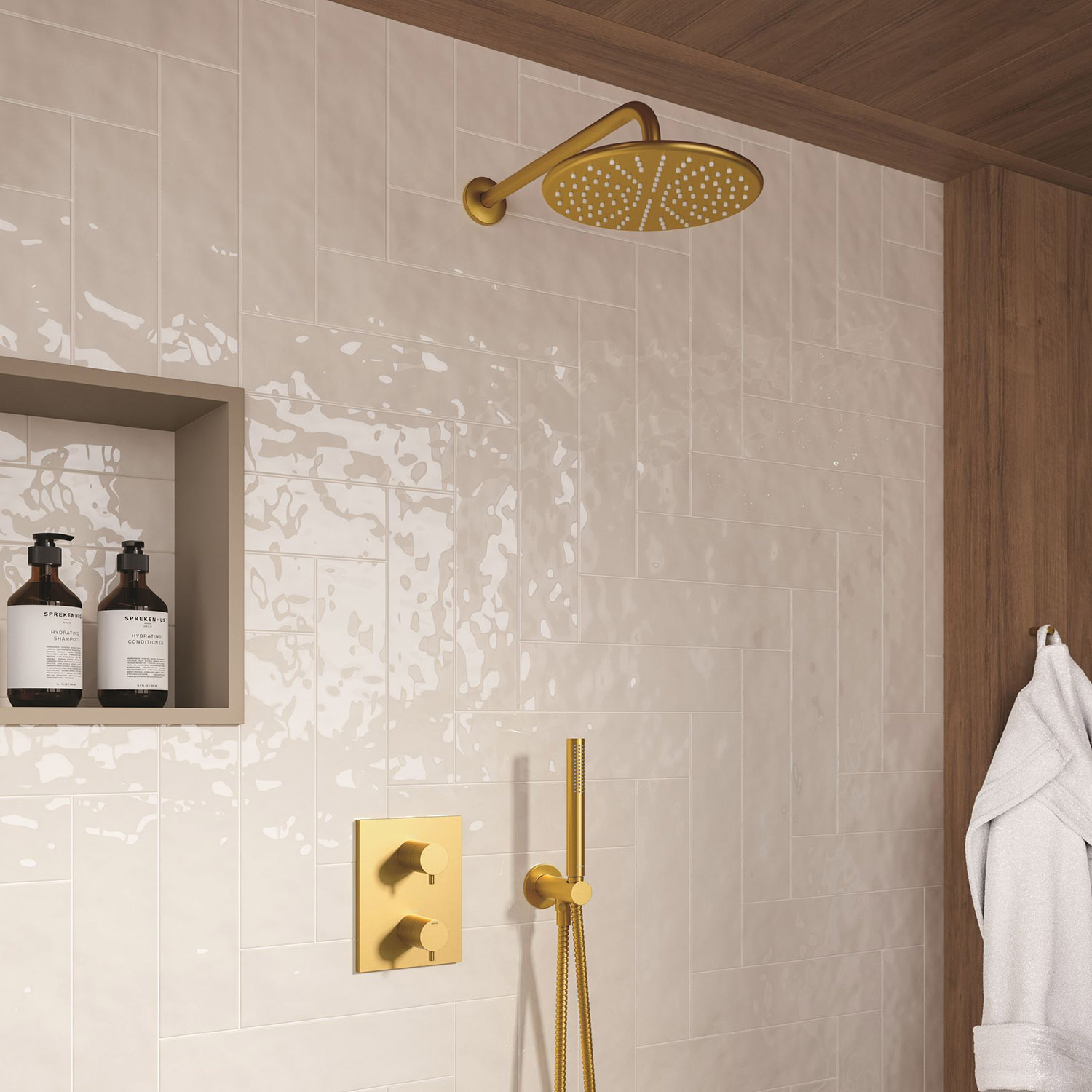 Ønsker du en ren, minimalistisk og eksklusiv dusjsone? Med Silhouet innbyggingskran fra Damixa får du en elegant kombinasjon av funksjonalitet og estetikk. Den børstede messingoverflaten tilfører badet varme, karakter og et sofistikert preg, mens designet uten synlige skruer gir et stramt og stilrent uttrykk.