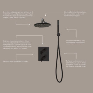 Hver del er nøye utformet med Sintef-godkjente løsninger og en holdbar PVD-overflate som tåler daglig bruk. Du kan velge blant flere overflater i Silhouet-serien for å skape et helhetlig og harmonisk uttrykk på badet.