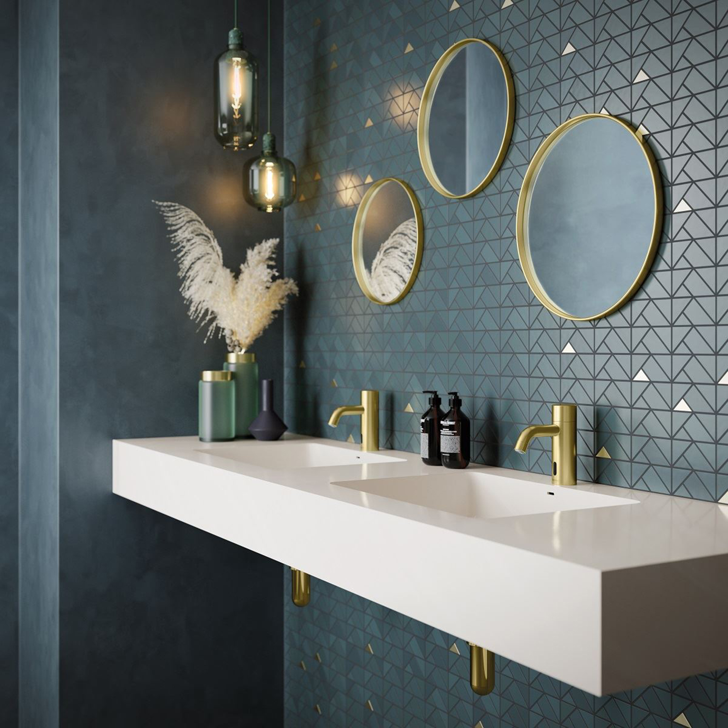 Beregnet for offentlig miljø. Sensorstyrt servantkran med fast innstilling av temperatur og vannmengde.