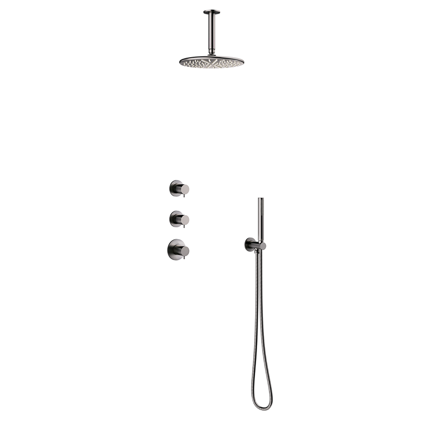 Silhouet XS2 fra Damixa er en eksklusiv og moderne takdusjløsning for innbygging, designet for deg som ønsker luksus i hverdagen. Med separat termostat og mengdestyring montert på rosetter, får du en stilren og minimalistisk løsning uten frontplate – perfekt for moderne bad.