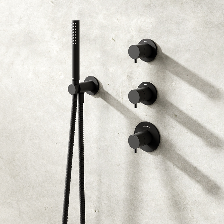 Silhouet XS2 fra Damixa er en eksklusiv og moderne takdusjløsning for innbygging, designet for deg som ønsker luksus i hverdagen. Med separat termostat og mengdestyring montert på rosetter, får du en stilren og minimalistisk løsning uten frontplate – perfekt for moderne bad.