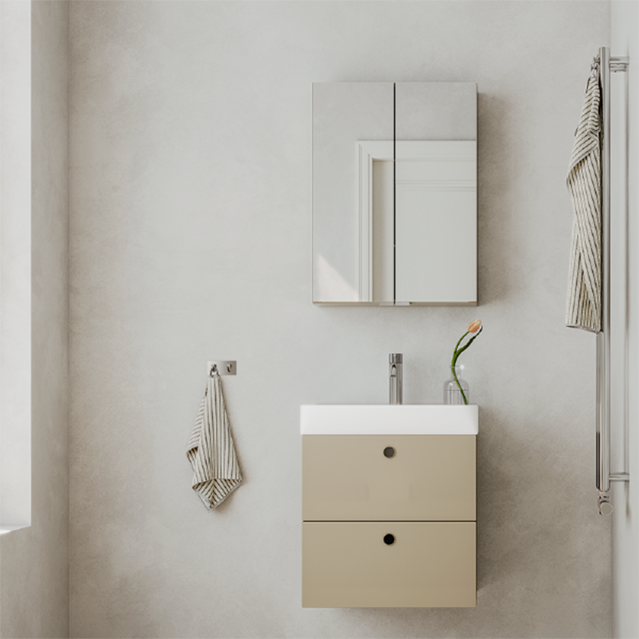 Baderomsskapet har to flyttbare hyller, som gir deg fleksibel oppbevaring av dine toalettsaker. I tillegg er det IP44-sertifisert, noe som betyr at det er beskyttet mot sprut fra alle retninger og er trygt å bruke i våtrom. For økt funksjonalitet kan du komplettere speilskapet med praktisk LED-belysning og en integrert stikkontakt.