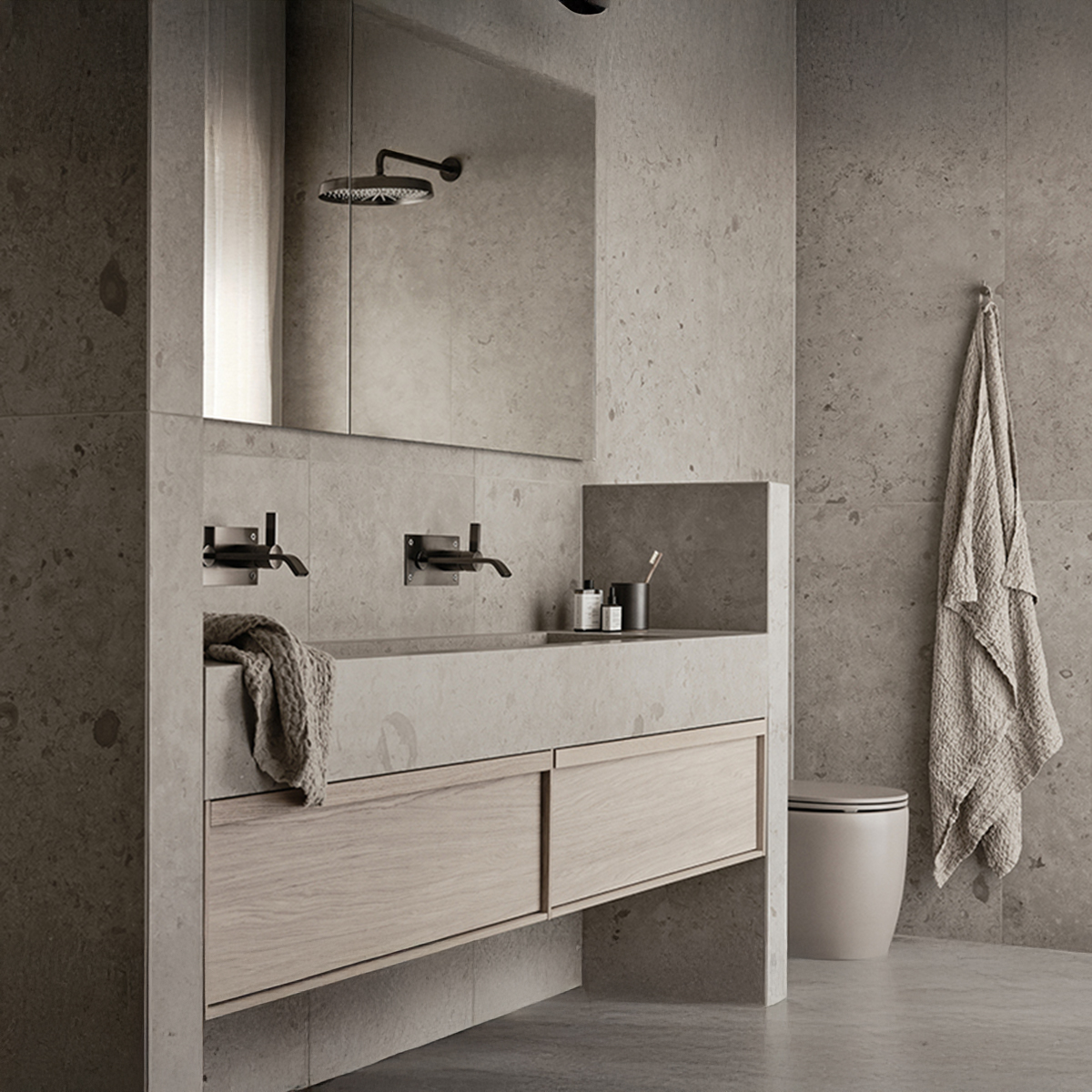 Elegant og moderne ettgreps servantbatteri, nøye designet for innbygging i vegg. Black Chrome fra Tapwell gir en mørk, mystisk glans med hint av holografisk dybde. Finishen inneholder platina og gir et eksklusivt, moderne uttrykk – perfekt for deg som ønsker et baderom med karakter og dybde.