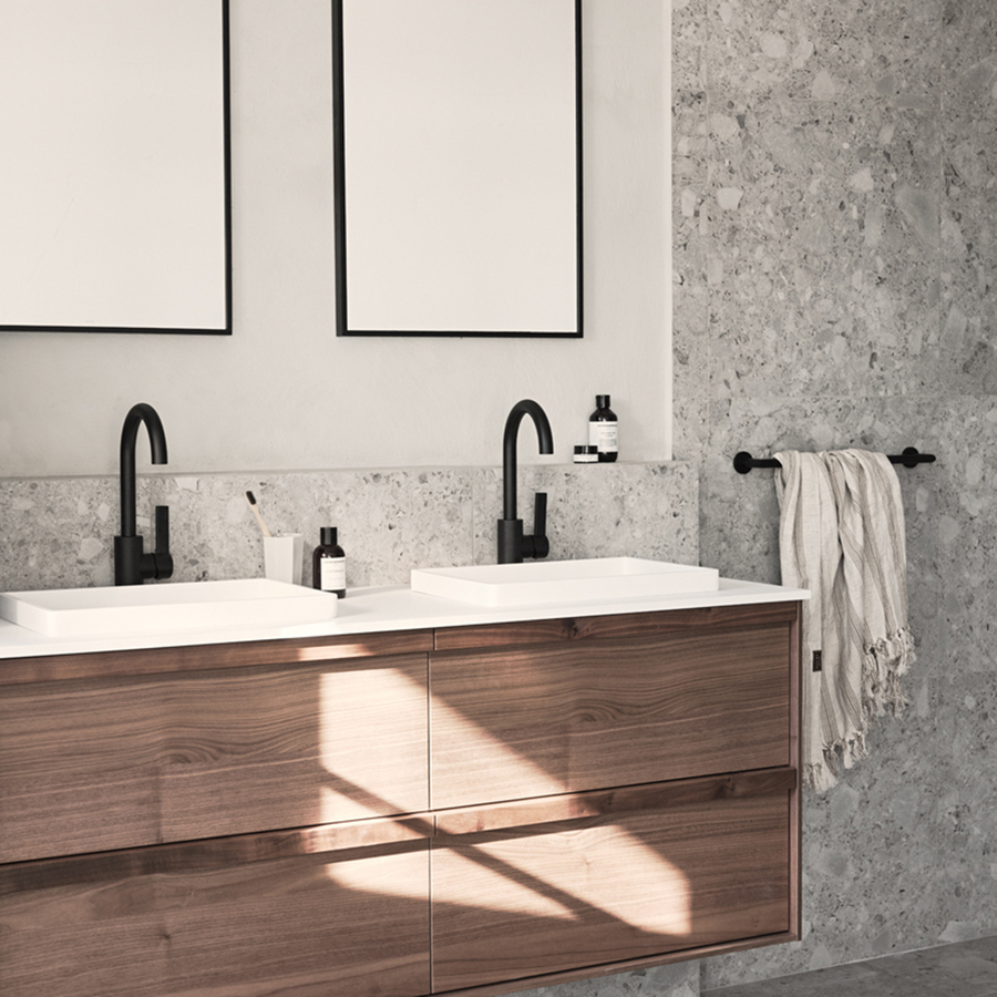 Gi badet ditt et moderne og sofistikert uttrykk med Tapwell ARM078 servantbatteri i sort matt. Dette elegante servantbatteriet kombinerer skandinavisk design med funksjonalitet, og passer perfekt til bolleservanter eller større servanter der du ønsker ekstra høyde og fleksibilitet. Den høye, svingbare tuten gjør det enkelt å bruke, samtidig som den sorte matte finishen gir et luksuriøst og tidløst preg på baderommet.