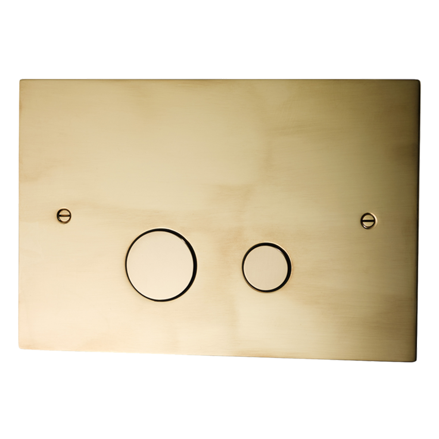 Spyleknapp for innbygging i metall. Hel og halvspyling. Alle komponenter til Tapwells blandebatterier er støpt i messing, en kobber- og sinklegering med enestående egenskaper. Hvis du velger et produkt i oksiderende messing, får du en gyllenblank overflate uten tilsetninger eller behandlinger. Med tiden mørkner den og får en flott patina.
