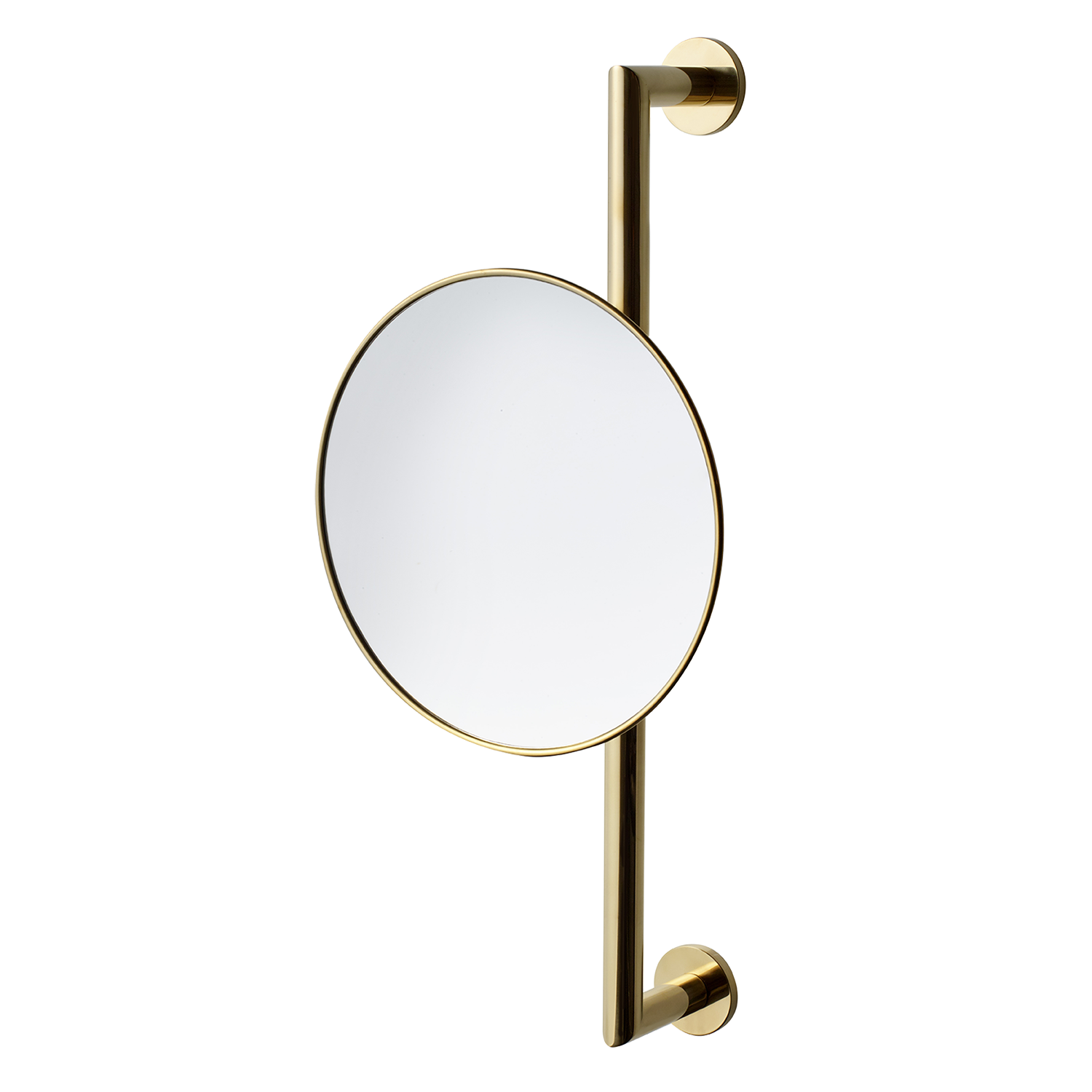 Sminkespeil med justerbar høyde. Oksiderende messing har en gyllenblank overflate uten tilsetninger eller behandlinger. Med tiden mørkner den og får en flott patina.