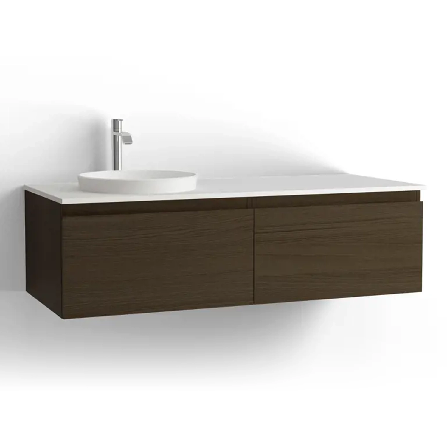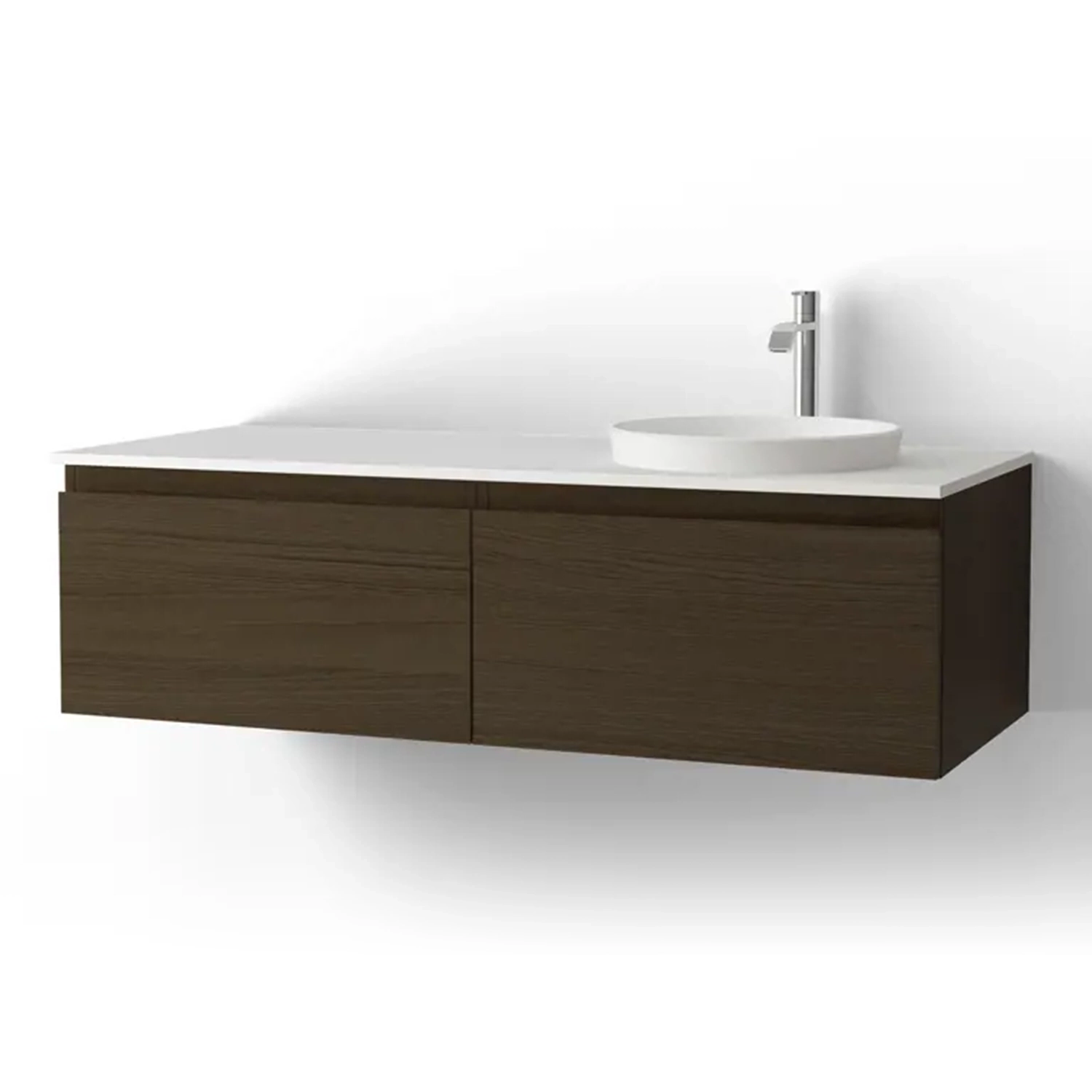 Flow-serien fås i breddene 500, 600, 750, 1000, 1200, 1500 og 2000 mm (mål er uten fronter), med finerte eller malte dører i alle våre standardfarger. Du kan velge enten Flow servanten i Top Solid med Easy Clean-vannlåsen og åpen bunnventil, eller den halvt nedfelte ovale/runde servanten Zone i Solid Surface med topplate i Solid Surface, komposittsteinen Moorland Fog eller Turbine Grey samt standard vannlås. Skuffene har gummimatter og to Mejram skuffinndelinger. Se tillegg for flere muligheter.