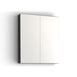 Ramme i sortmalt ask. Underlys LED 7,5W. To dobbeltsidige dempede speildører. Magnet og løst forstørrelsesspeil er festet for valgfri plassering. To glasshyller medfølger. Leveres montert. Stikkontakt 230V inkludert. Beskyttelsesklasse IP44. Fargetemperatur 3000K. Energiklasse A ++. Dimbar. Belysning går på 230V direkte og krever ingen driver.