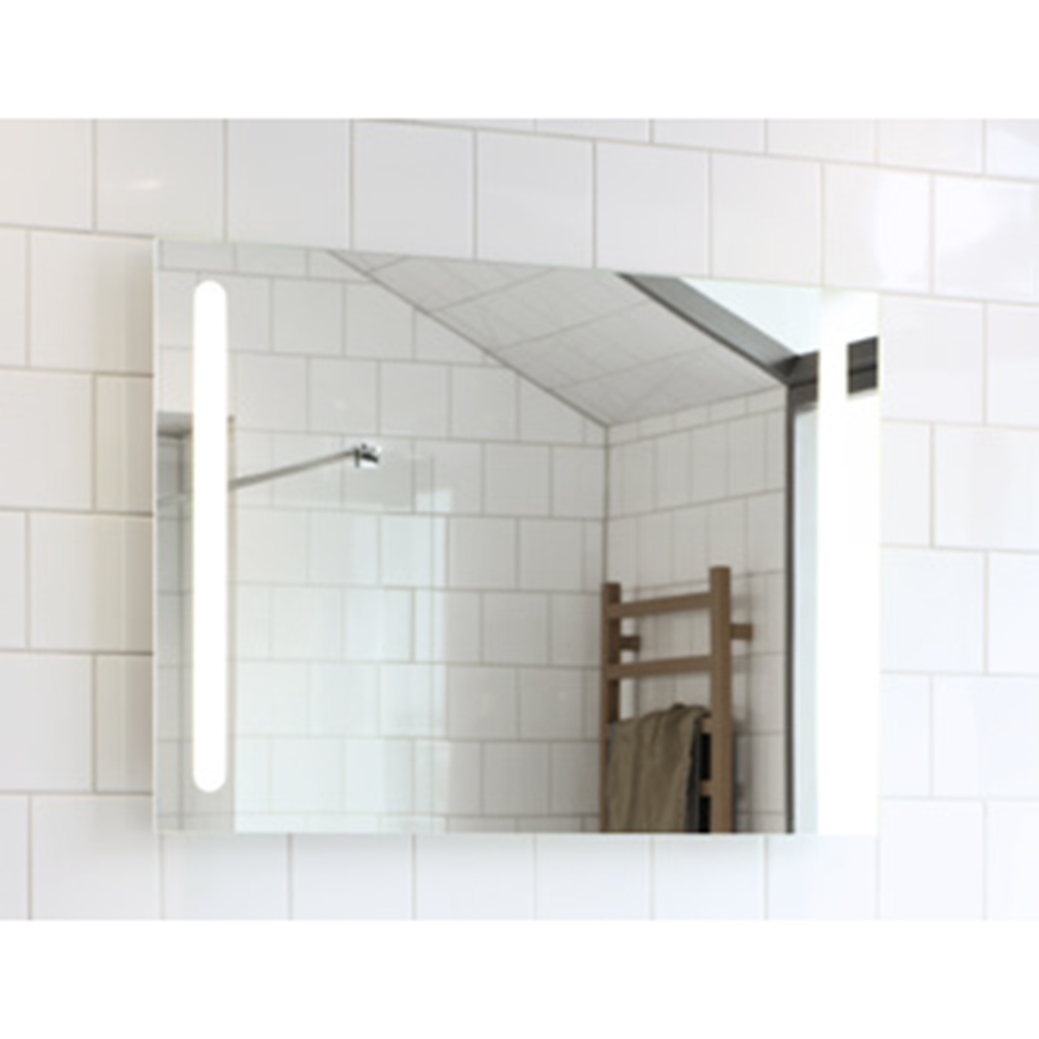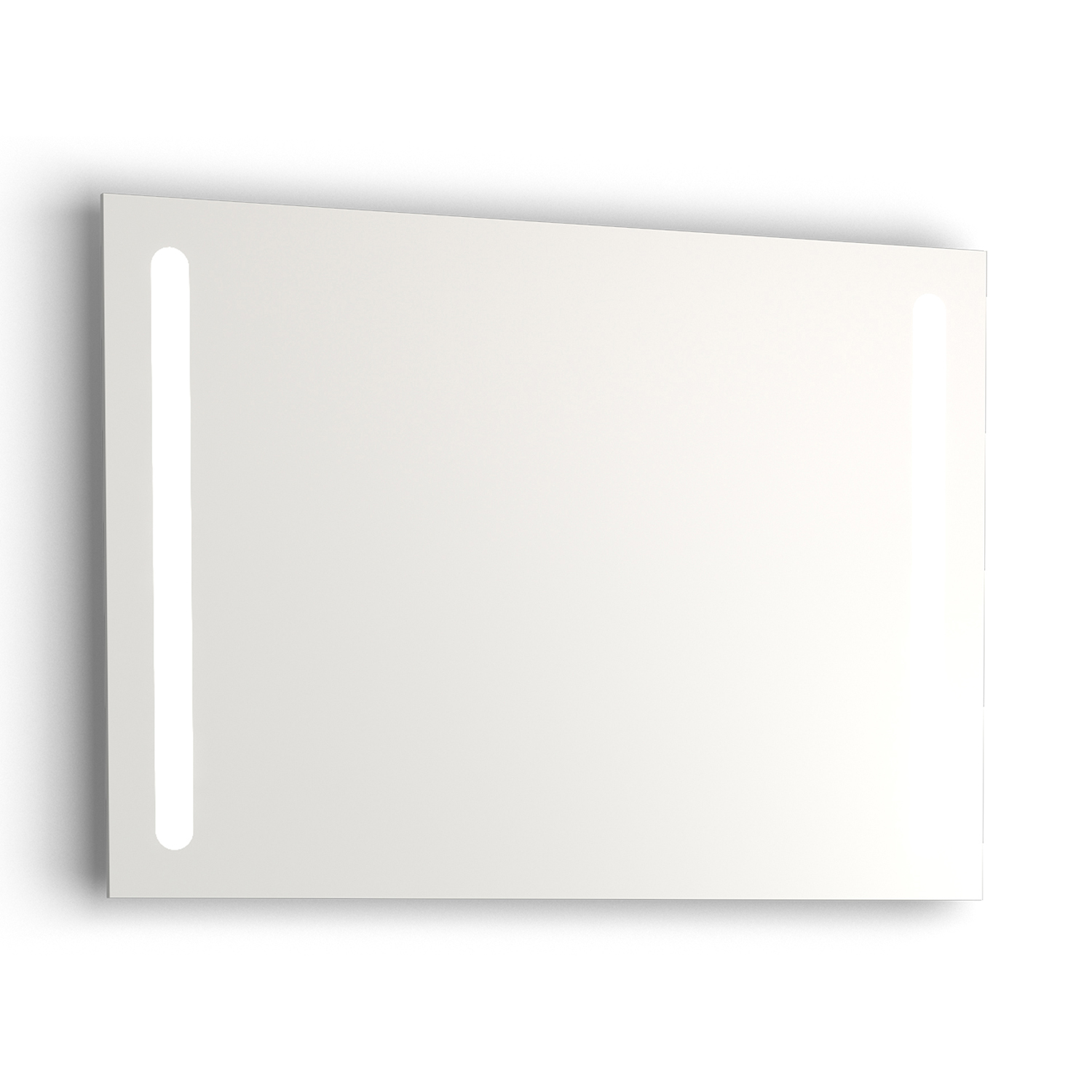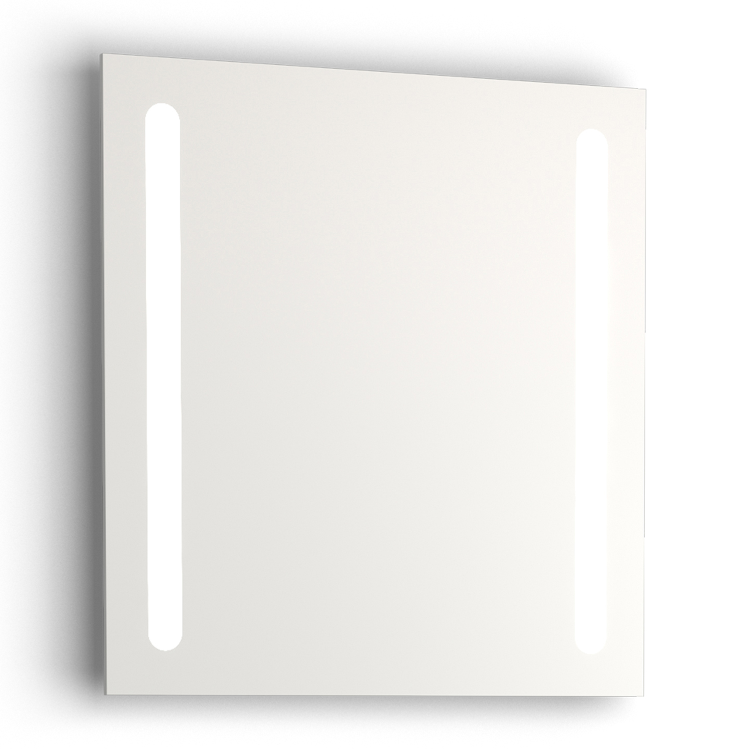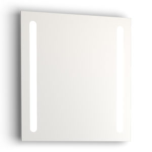 Speil med to vertikale belysninger, LED 20W. Kapslingsgrad IP24. Energiklasse D. Fargetemperatur 3000K. Dimbar. Ikke vendbar.