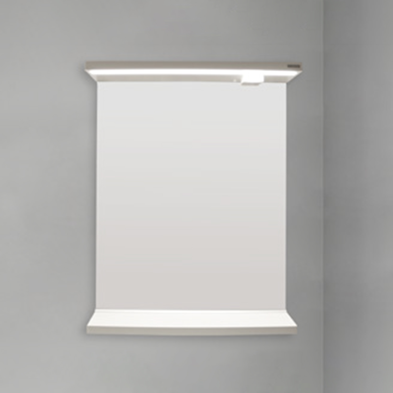 Rektangulært rett speil med et naturlig formspråk. Med kondensavledende aluminiumslist som kan plasseres mellom speil og hylle*. Klammersett (to klammer) er inkludert. OBS! Ved montering uten hylle og belysning må speilklammersett (fire klammer) kjøpes som tillegg.