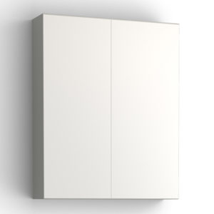 Dobbeltsidig speildør med demping. Speilskapet er forberedt for el-installasjon på oversiden mot taket. Flyttbare glasshyller er inkludert. Integrert 230V stikkontakt fås som tillegg. Kan kombineres med belysning, se anbefalinger under hver enkelt bredde.