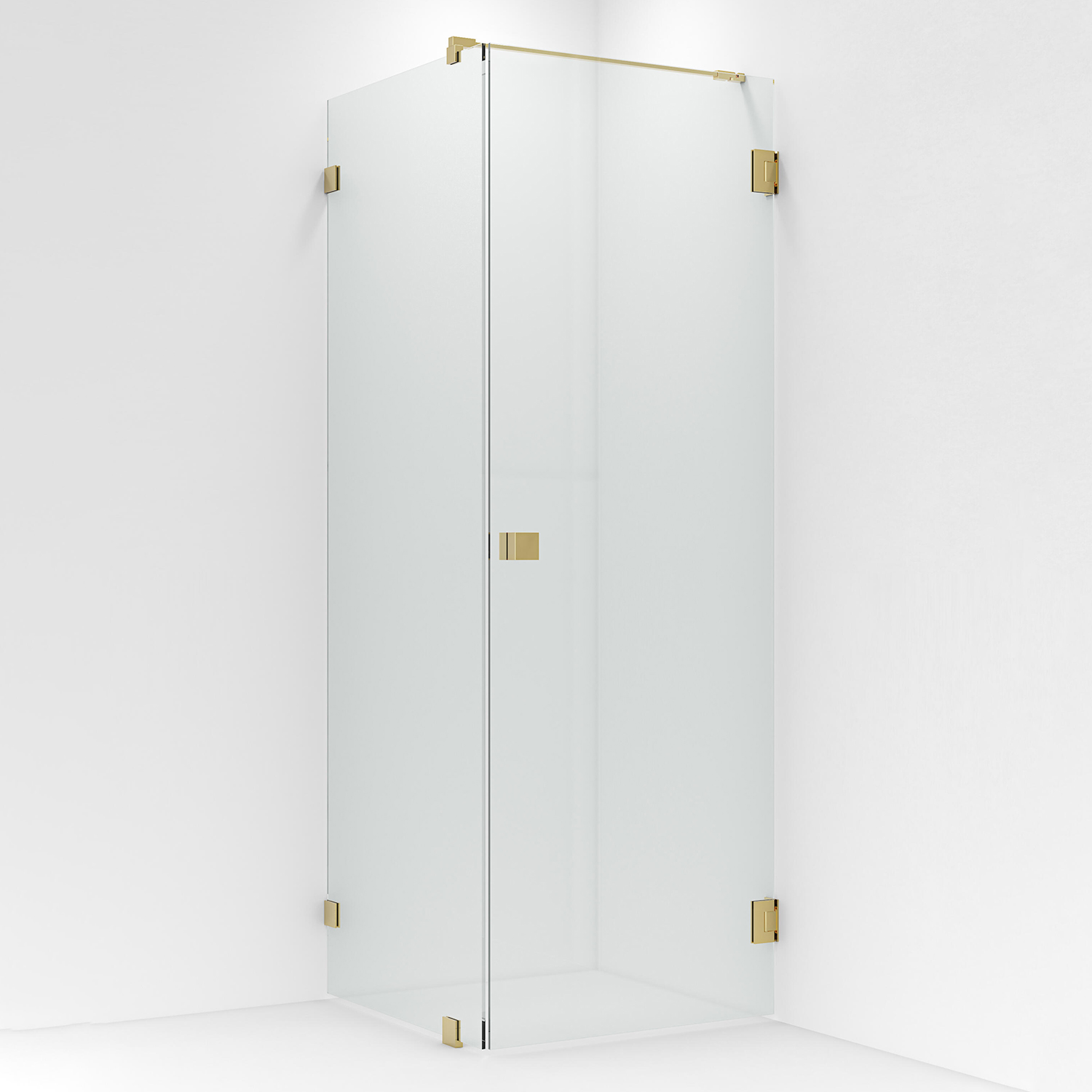 Eksklusivt og stilrent glassfelt med hengsler i gull