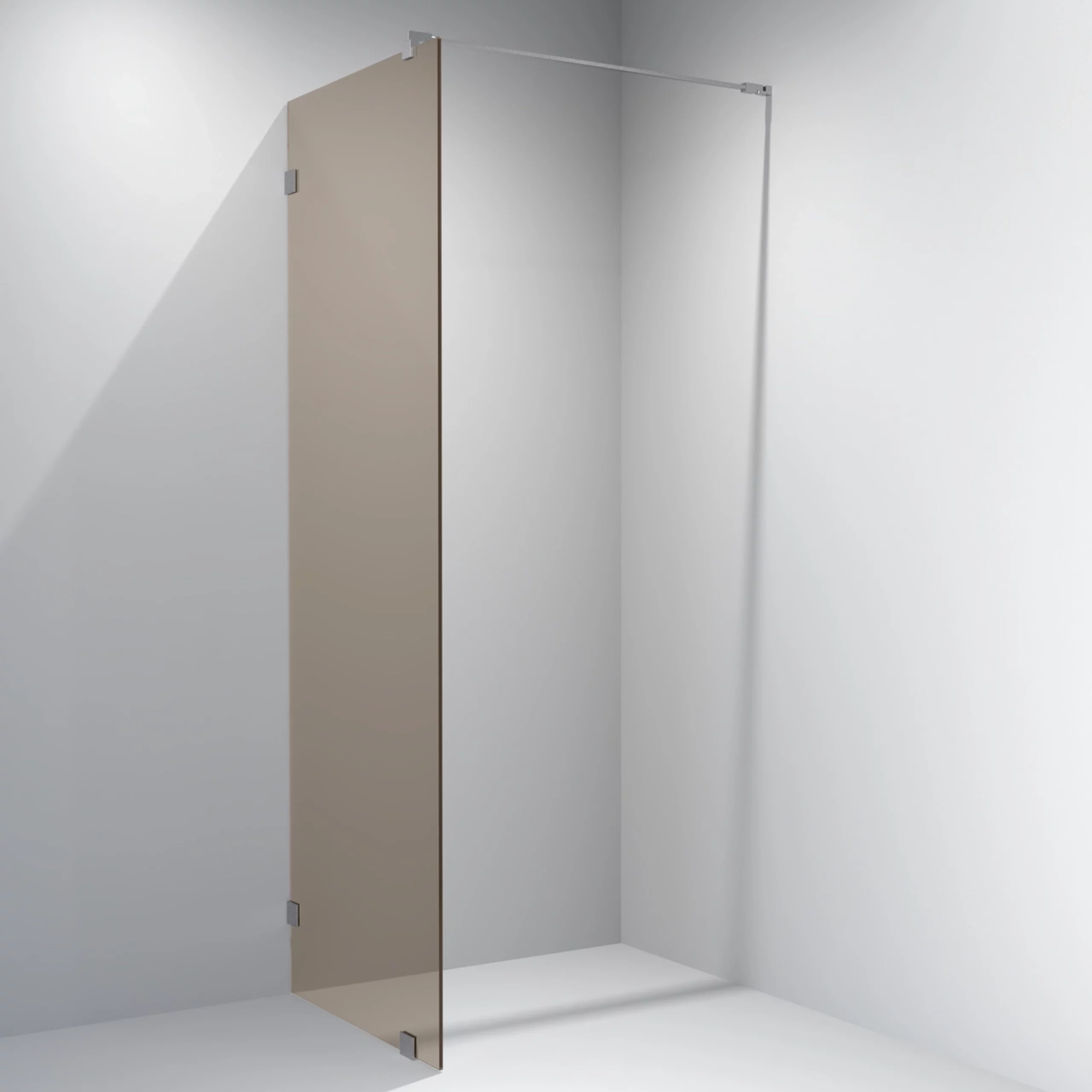 Eksklusivt og stilrent glassfelt med hengsler i krom