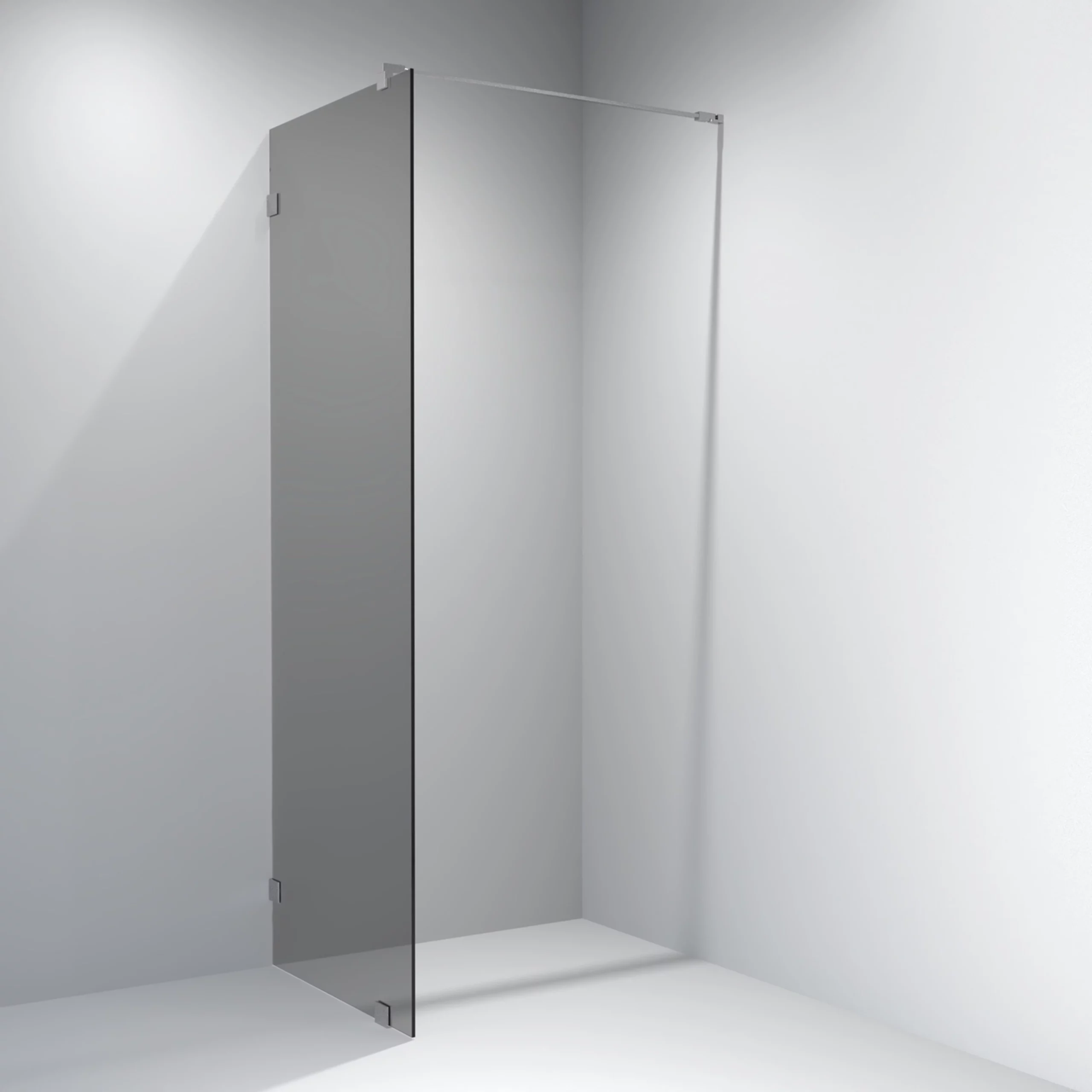 Eksklusivt og stilrent glassfelt med hengsler i krom