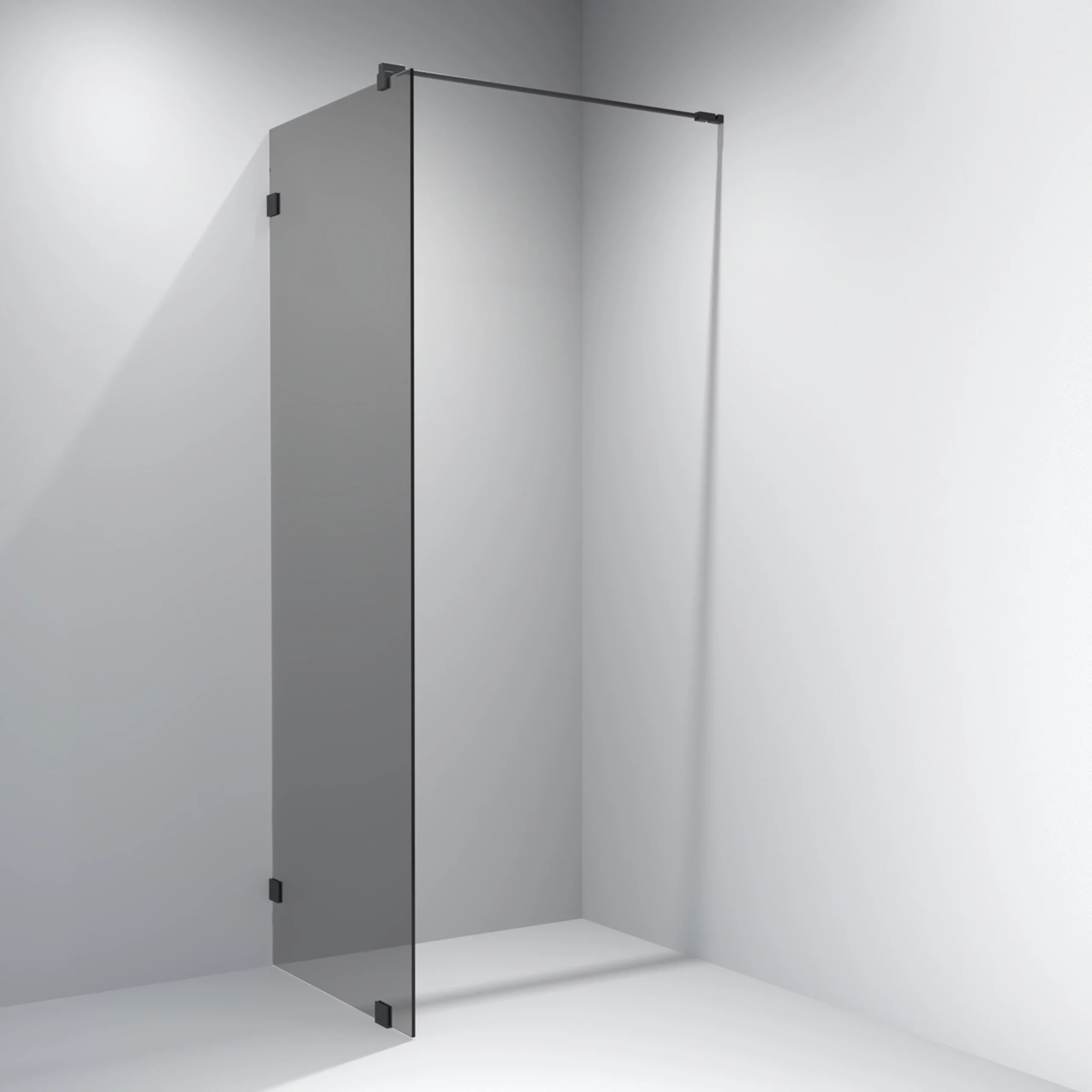 Eksklusivt og stilrent glassfelt med sorte hengsler
