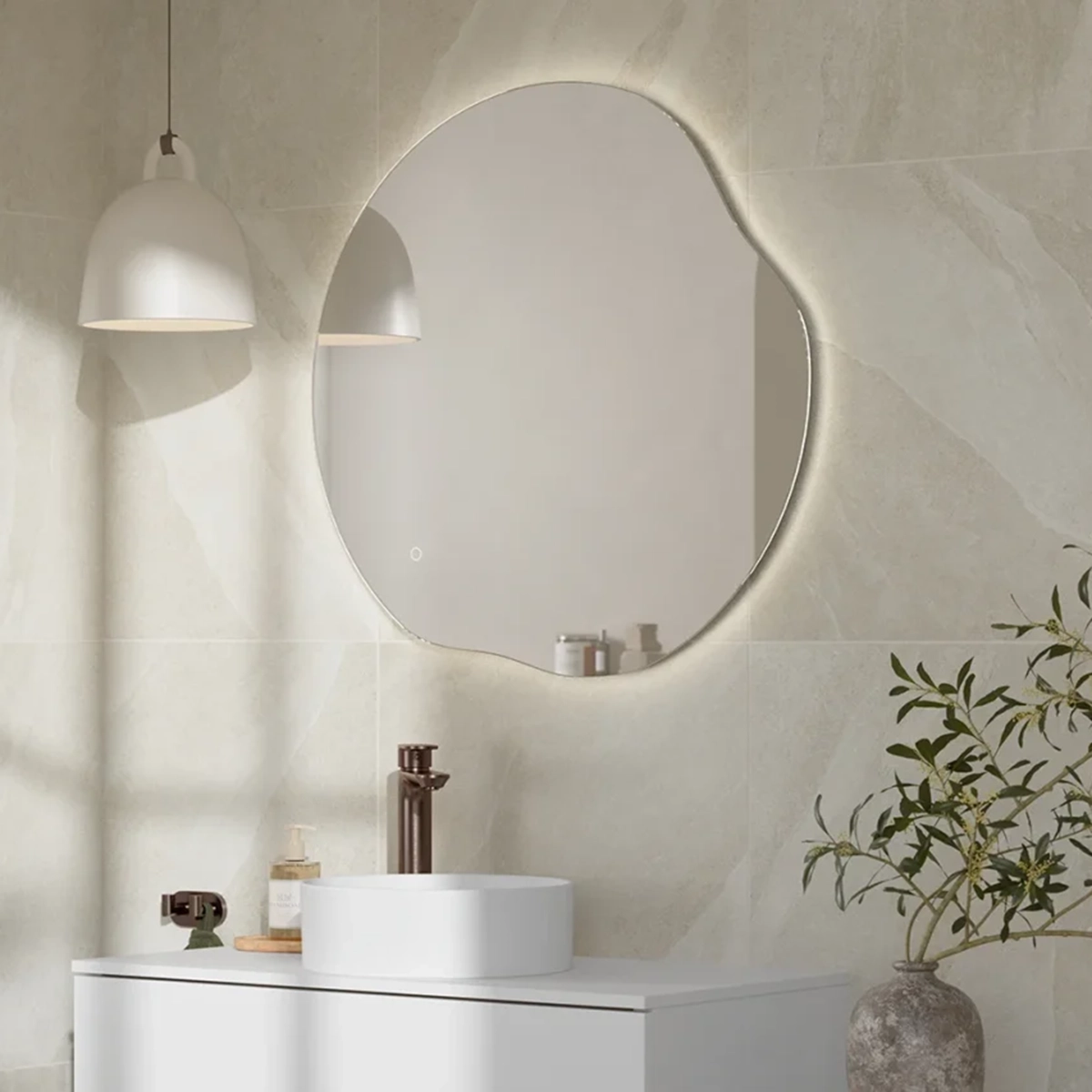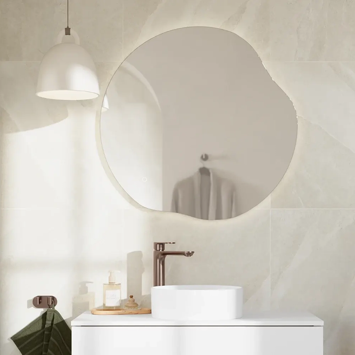 Organisk speil med asymmetrisk form og LED-lys