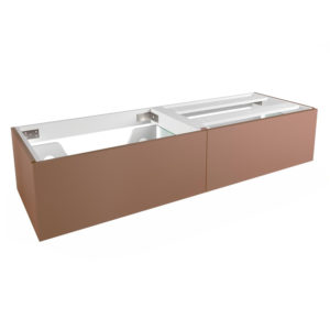 Det er solide skuffeskinner med selvlukkende funksjon og demping som sørger for at man kjenner kvaliteten. Funksjonelle løsninger som C-utsparing for vannlås og mulighet for stikkontakt i skuff. Møblene er sammensatt av komponenter av høyeste kvalitet og har en enkel og smart montering. MIE DEMI-serien passer til vanlige standardservanter og benkeplater med bollevask. Servanten bestiller du i tillegg. Husk at du også kan bestille LED belysning i skuff og/eller under servant. Du vil da få et eksklusivt preg på baderomsmøbelet.