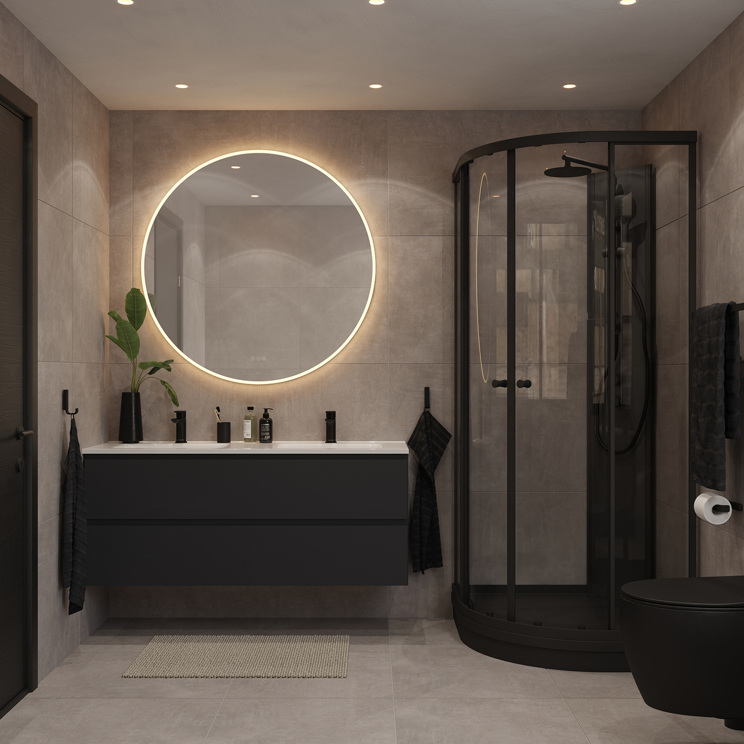 Dette stilrene og minimalistiske dusjkabinettet er utformet med en moderne estetikk og praktisk funksjonalitet i tankene. Med rette og enkle linjer gir det en ren og elegant tilstedeværelse på ethvert baderom. De vippbare dørene legger til en ekstra dimensjon av brukervennlighet ved å gjøre rengjøringen enkel og praktisk. Med doble trinser både øverst og nederst på dørene, sikres en jevn og stabil bevegelse ved åpning og lukking, noe som legger til en følelse av pålitelighet og kvalitet. Dusjkabinettet leveres komplett med et integrert termostatbatteri, som sikrer presis kontroll over vanntemperaturen for en behagelig dusjopplevelse. I tillegg inkluderer det en 20 cm toppdusj, som gir en luksuriøs og forfriskende dusjopplevelse. Med et dusjsett som også har en praktisk hylle, tilbyr dette dusjkabinettet både funksjonalitet og praktisk oppbevaringsplass for dusjprodukter, og gjør det til et allsidig og attraktivt valg for ethvert baderom.