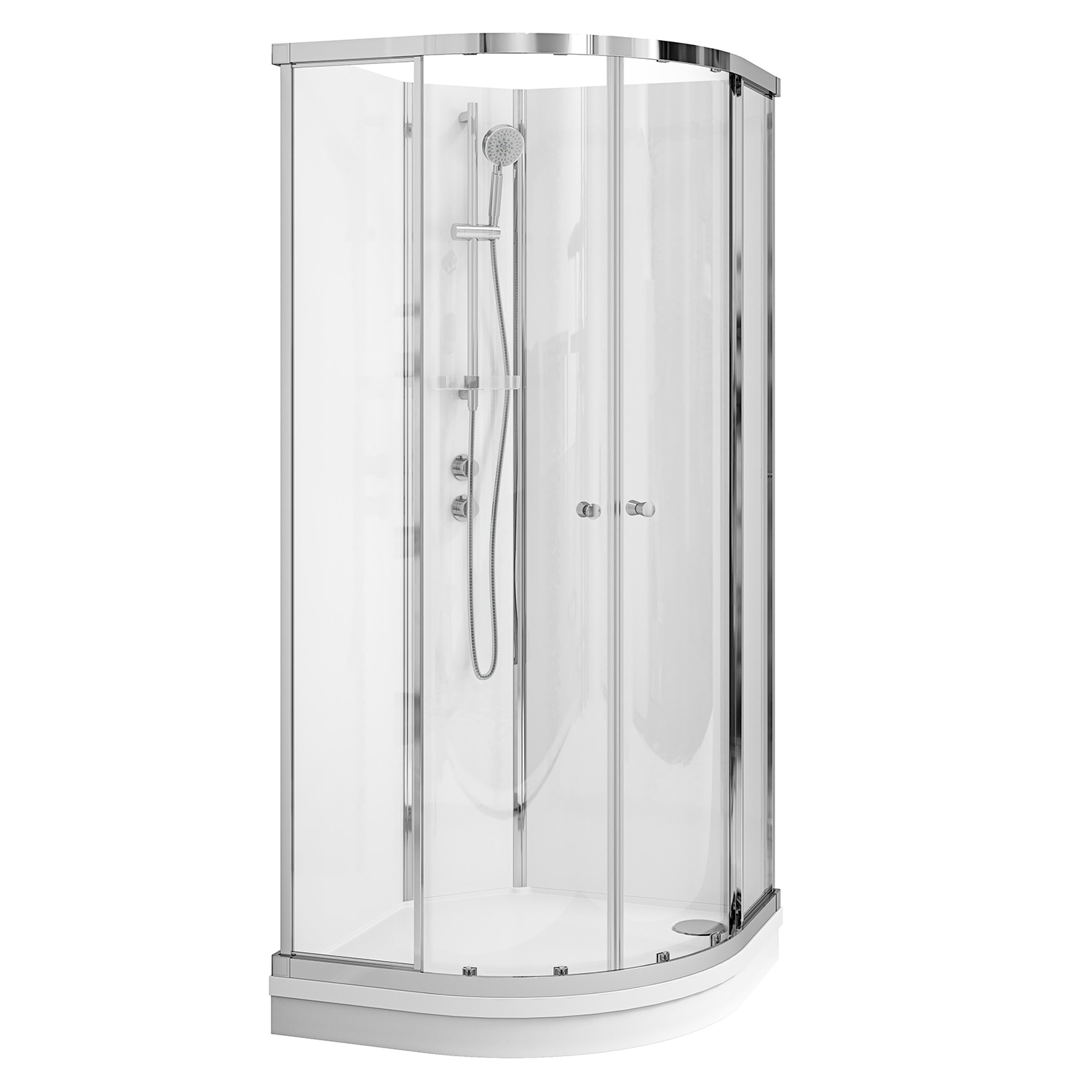 Sofia dusjkabinett med rette, enkle linjer og vippbare dører som gjør det svært enkelt å rengjøre. Dører med doble trinser oppe og nede for jevn og stabil gange ved åpning og lukking. Stabilt dusjkar i glassfiberforsterket akryl med justerbare støttebein. Frontpanel med magnetfeste (som kan demonteres uten verktøy) for enklere installasjon/rengjøring. Leveres med integrert termostatbatteri og dusjsett med praktisk hylle.