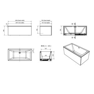 Temse badekar er et lite og rett badekar med god sittekomfort og moderne design. Velg selv om du vil bygge dette inn/ned, eller bruke front og endepanel. Badekaret er kun 150 cm og passer de fleste baderom. Karet kan roteres 180° og man kan feste frontpanel og endepanel på begge sider.