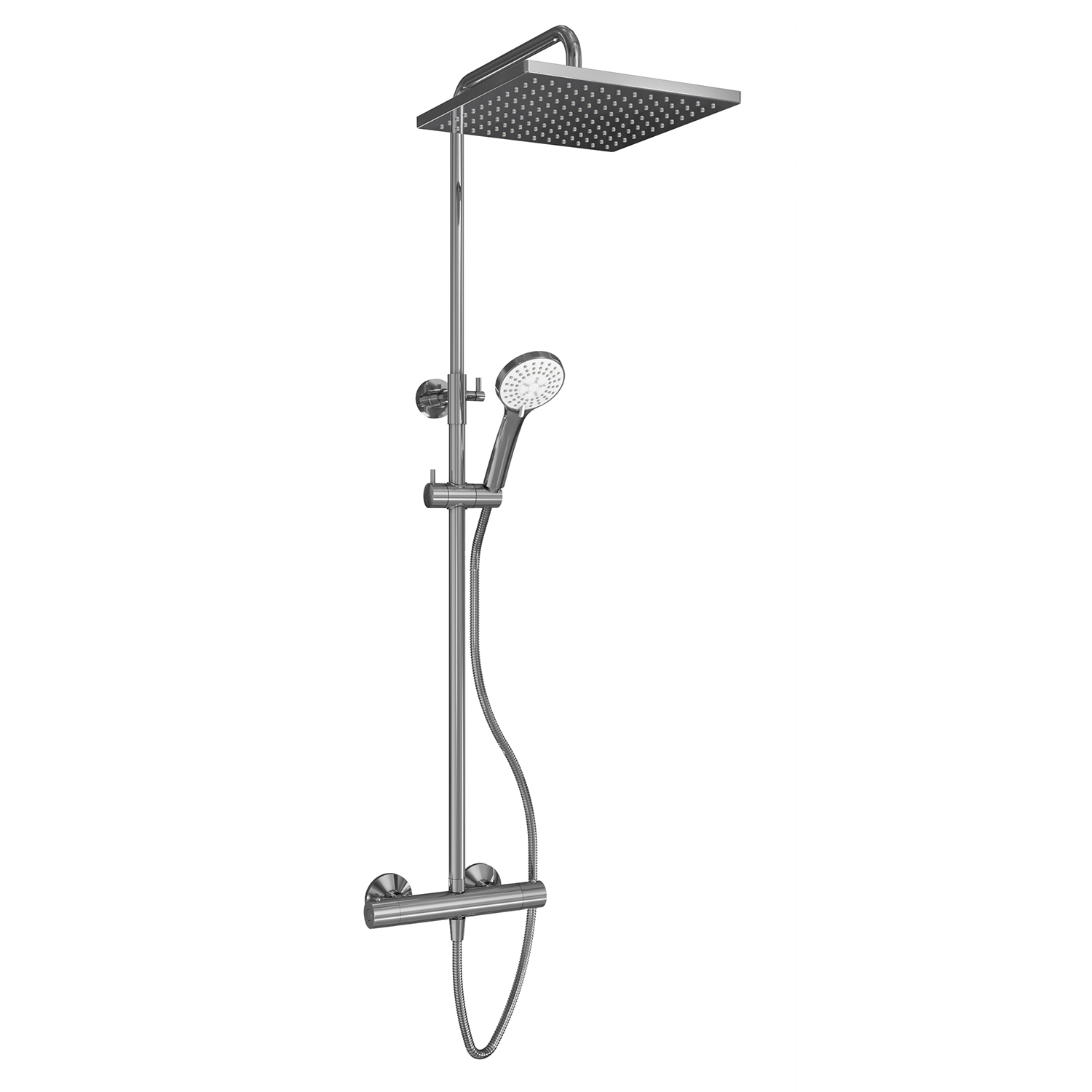 Rainshower med termostatbatteri og skoldesperre som gjør det trygt for de minste. Høydejusterbar toppdusj gjør dusjen enkel i bruk.