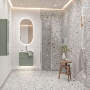 INR Bric 4 Dusjkabinett Hvit – Stripet/Frostet glass
