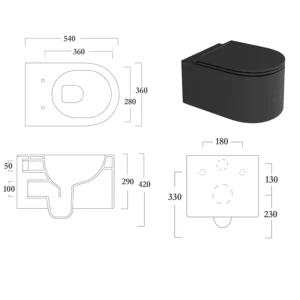 Olympia Monolith Vegghengt Toalett m/Sete – Sort Matt